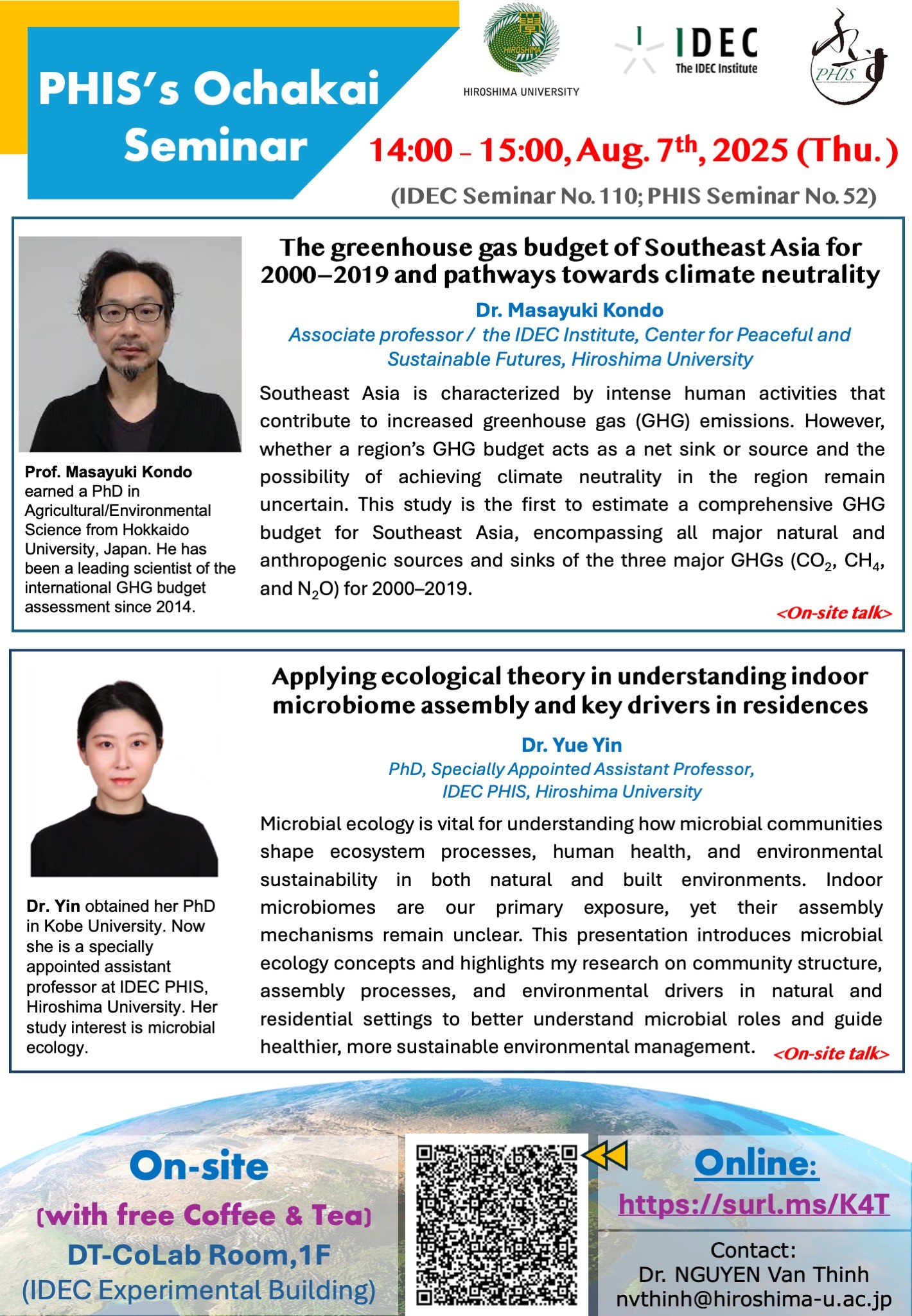 - Dr. Yue Yin, Specially Appointed Assistant Professor, The IDEC Institute, PHIS, Hiroshima University