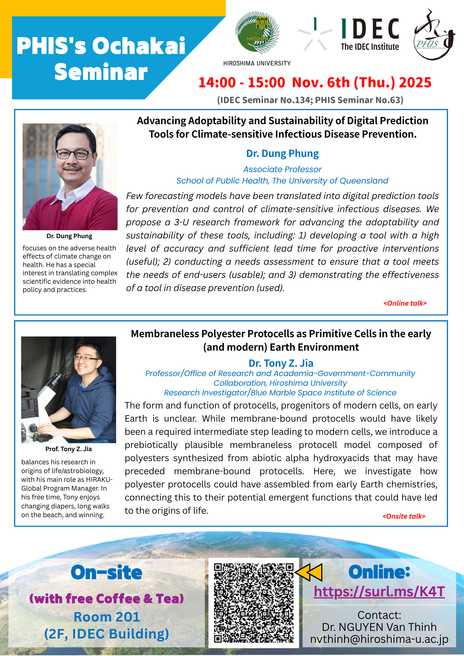 - Dr. Tony Z. Jia (Hiroshima University, Blue Marble Space Institute of Science)